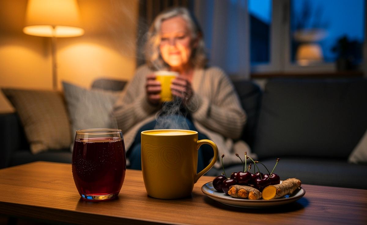 Ein simples, koffeinfreies Abendgetränk kann den Schlaf fördern und morgendliche Gelenksteifigkeit verringern. Es kombiniert gezielte Hydratation mit entzündungsmodulierenden Pflanzenstoffen und schlaffördernden Signalen. Für viele Menschen ab 60 steht dabei die Linderung arthrosebedingter Beschwerden im Vordergrund. Der Ansatz: Wasserhaushalt stabilisieren, Entzündungsreize dämpfen und die innere Uhr durch milde Melatonin-Impulse unterstützen. So fällt das Aufstehen leichter, und die Beweglichkeit steigt schneller an. Entscheidend sind wenige, gut verträgliche Zutaten, die regelmäßig angewendet werden und zu einer ruhigen Abendroutine passen. Zwei alltagstaugliche Optionen sind Sauerkirsch-basierte Drinks und eine sanft gewürzte Goldene Milch. Beide Varianten sind leicht anzupassen – von zuckerreduziert bis laktosefrei – und können mit sinnvollen Zusätzen wie Magnesium oder Kollagen ergänzt werden, ohne die Nacht zu belasten.