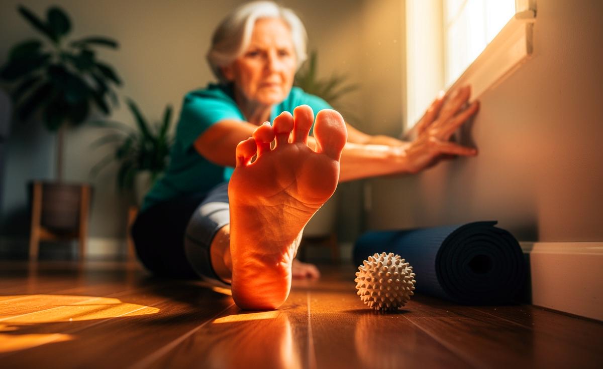 - 🦶 Regelmäßiges Dehnen der Fußmuskulatur ab 60 erhält die Beweglichkeit, verbessert das Abrollen und stärkt die Selbstständigkeit im Alltag.